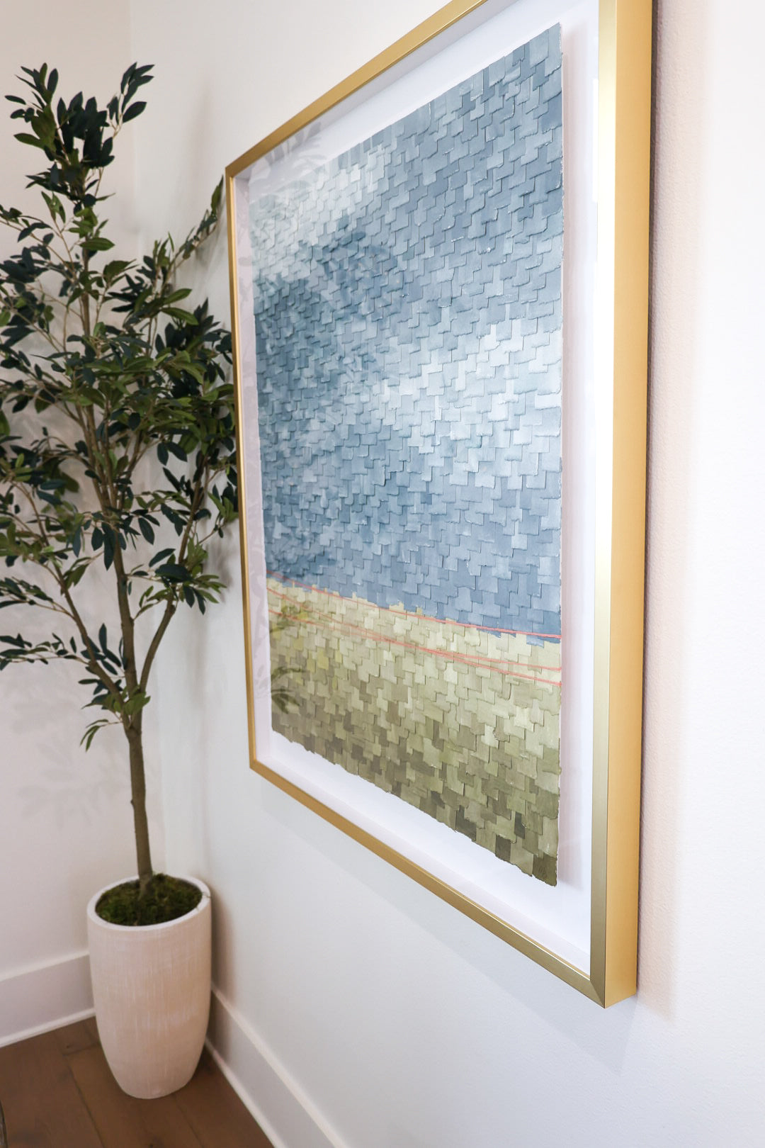 39x48 Mixed media landscape. Frames in gold shadowbox.